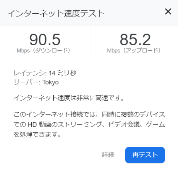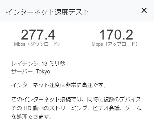 結果は高速で複数のデバイスを処理できますと出ていますが実はこの速度では家族複数人で動画を見たり、ましてやゲームをしたりとなると物足りない数字です。