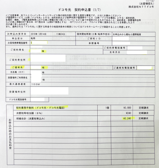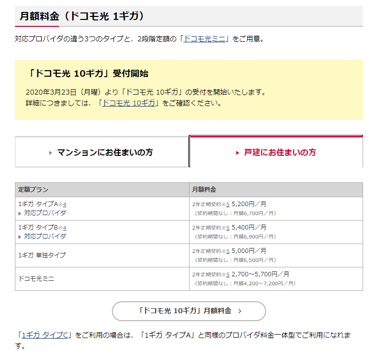 そんなバカなという気持ちと抱きながらドコモ光のホームページを見たが1Gと10G以外の料金体系は出ていない。キャリアショップでもらったパンフレットも1Gの説明しかされていないが契約書を見てみると・・・
