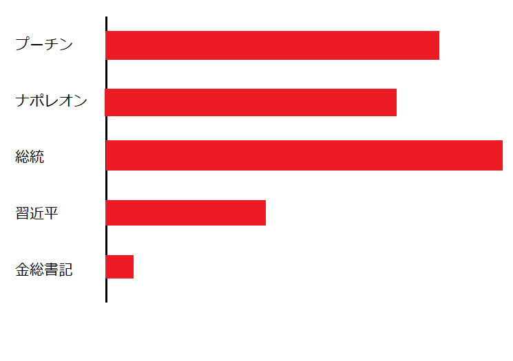 2位は気力実力みなぎるプーチン。どう考えても現状で世界ナンバー1の政治家。いや政治家と言うより世界皇帝は誰かと聞かれたら、先代はロックフェラーだったかもしれないが2021年現在はプーチンだね。軍事力政治力影響力その他もろもろ抜きん出ている。財力が若干少なさそうだけど現在お金の価値は急激に下落しているので全く問題ない。あっ、言い忘れた独特のユーモアもある。