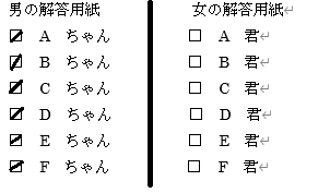 男の解答用紙には□にチェックがついた状態で配られる。消すのが面倒臭いからこのまま出そうという男が多い。