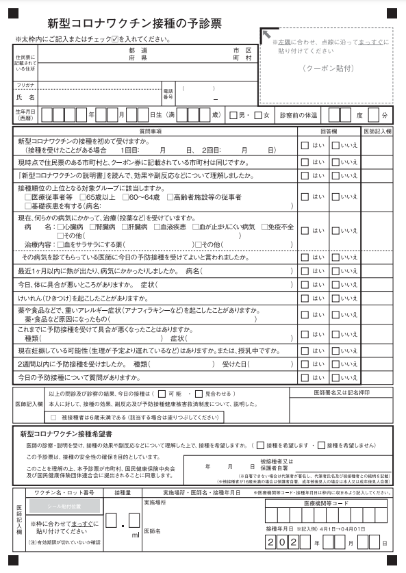 新型コロナワクチン接種記録書をもらい忘れる可能性がある。