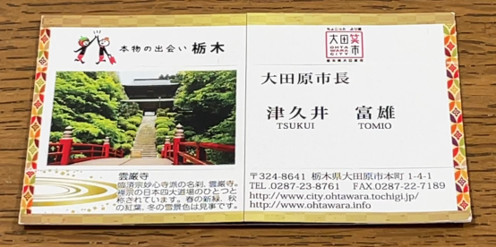知人を通じて頂いた名刺が凄いので那須烏山市の川俣純子市長を通じて津久井市長に動画アップの許可を頂きました。 東京仙台から新幹線で70分 車で10分 大田原市は近いです 雲厳寺 https://www.city.ohtawara.tochigi.jp/docs/2013082765673/ 大田原屋台まつり https://ohtawara.jp/yatai/ くろばね紫陽花まつり https:// […]