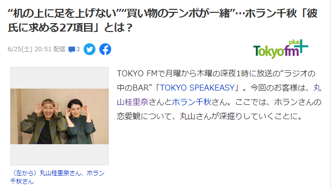 ホラン千秋さんに対して私が言えることは 私はホラン千秋さんの話を聞き流さずにきちんと検討する優しい男であるという事だ。 ただ、真摯に検討した結果出てくる結論は「無理」です。 (サムネの確認がなぜか?出来ない!) ホラン千秋さん、いつの間にか27項目で無くて28項目に彼氏の条件が増えている。 買い物のテンポが一緒なんて男性はいません! 買い物の店舗が一緒ならあり得るけれど 先に帰らせて頂きます!!